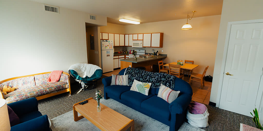 Apartments in the Peaks house six students and come fully furnished. All amenities are included in the housing cost.